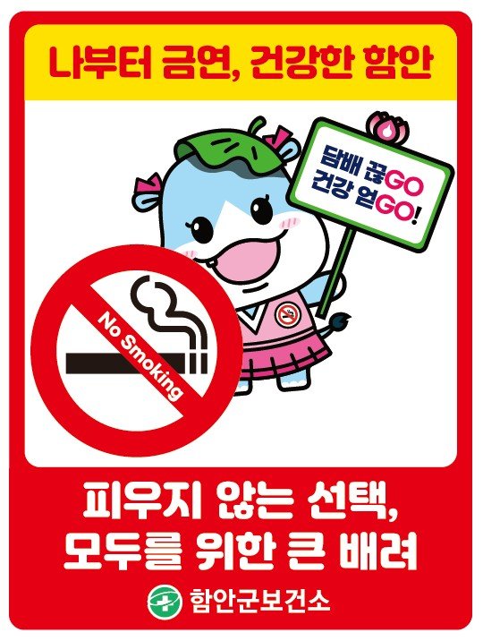 이번 표지판은 상단에 군의 금연 슬로건 ‘나부터 금연, 건강한 함안’을 담고 군 금연 캐릭터 ‘금연좋아! 하마니’와 금연 표식을 함께 배치해 누구나 쉽게 금연 메시지를 인식할 수 있도록 디자인됐다.