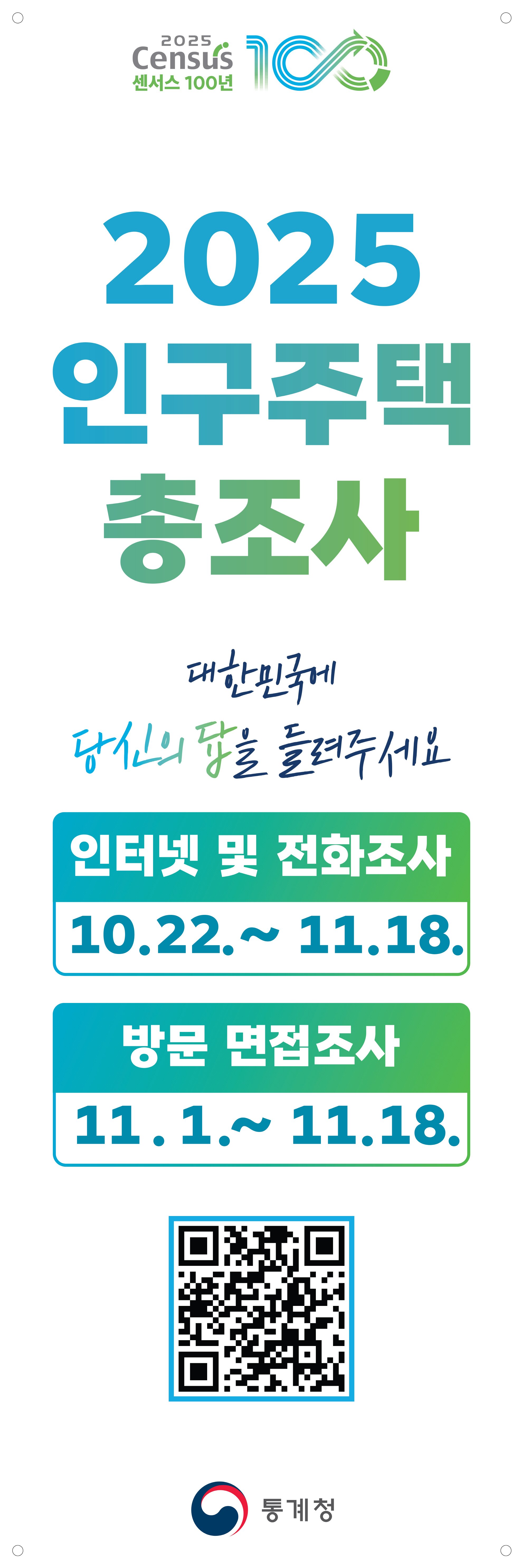 2025 인구주택총조사는 11월 18일까지 인터넷과 전화를 통한 비대면 방식으로 참여할 수 있으며 10월 말까지 응답하지 않은 가구에 대해서는 11월 1일부터 18일까지 통계조사원이 방문해 태블릿PC를 활용한 대면조사를 실시한다.