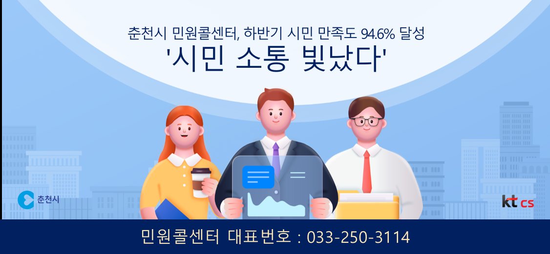 춘천시 관계자는 “조사 결과는 곧 민원콜센터가 시민의 삶에 얼마나 밀접하게 다가가고 있는지 알려주는 셈”이라며 “앞으로도 위탁사와 협력해 친절하고 질 높은 서비스를 제공하도록 역량을 집중하겠다”고 말했다.