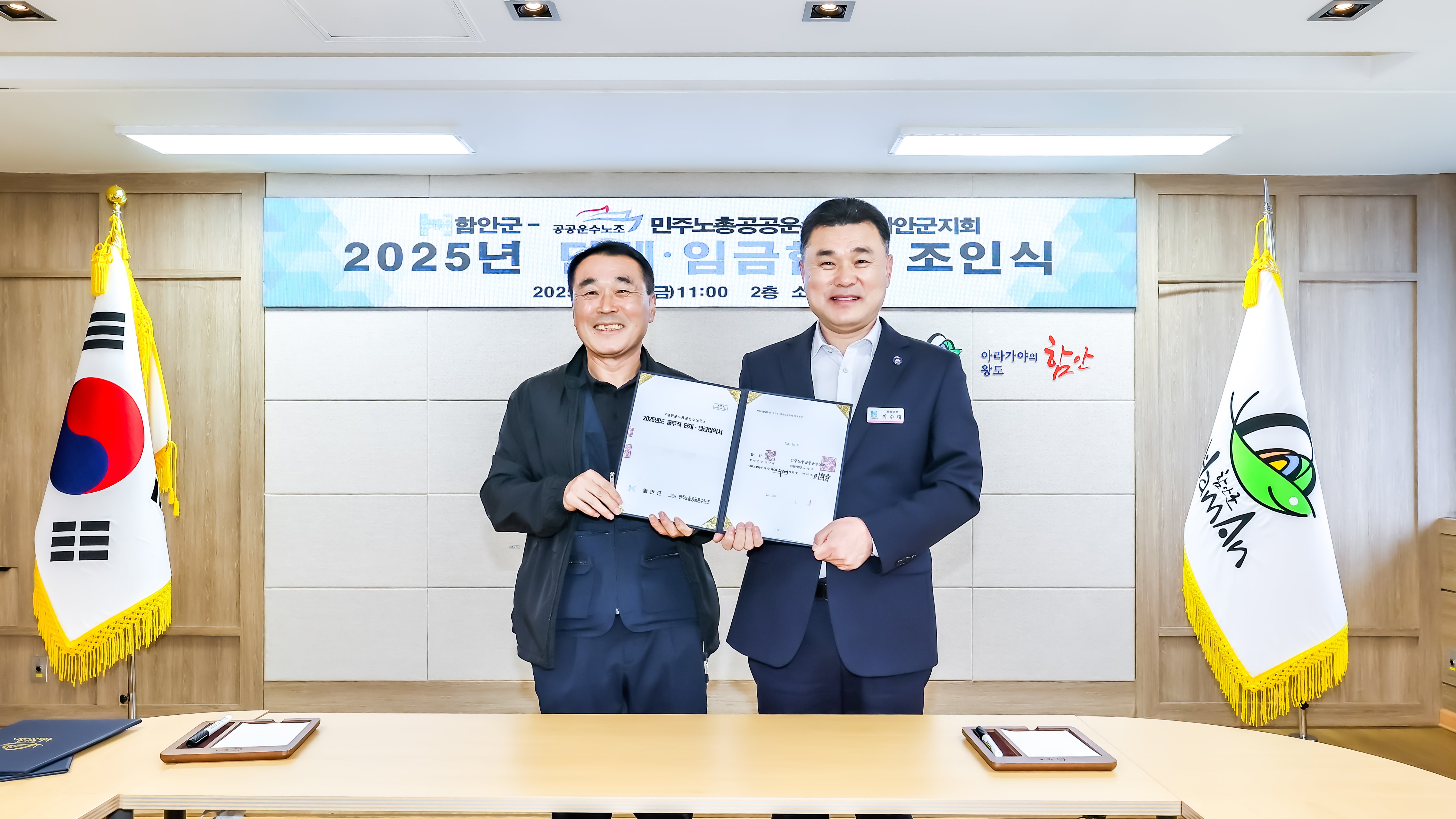 이날 조인식에는 이수태 함안군 행정과장과 이덕무 공무직노조 함안군지회장을 비롯한 양측 교섭위원이 참석했다.