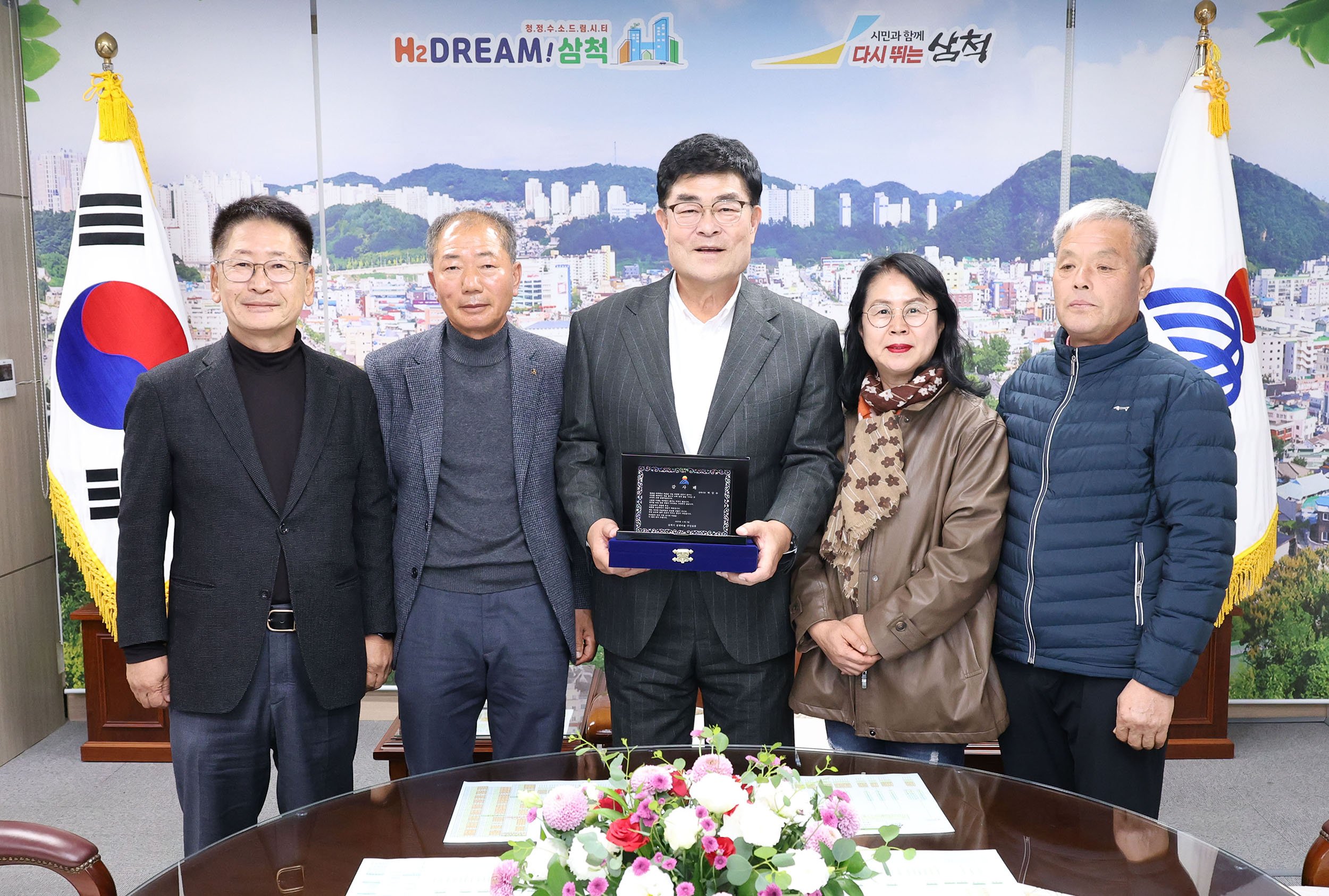 [아시아월드뉴스] 삼척시 갈천동 주민들의 숙원사업이던 갈천동마을회관 신축이 완료됨에 따라, 갈천마을운영위원회 대표 심전걸 통장 등 4명으로 구성된 마을대표단이 11월 3일 시청을 방문해 감사를 전했다.