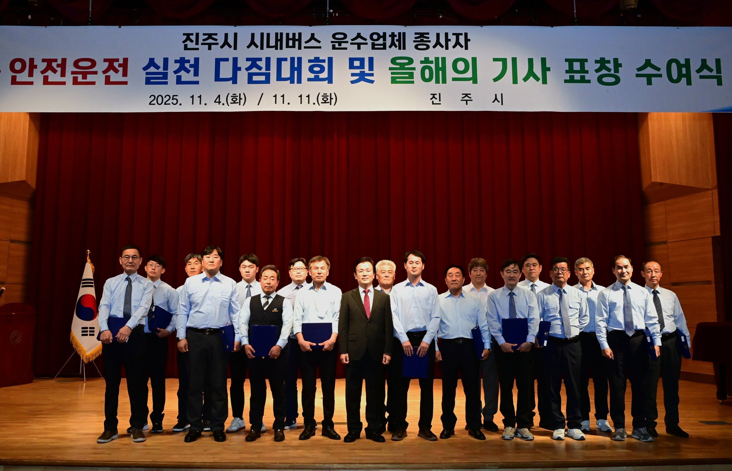 조규일 진주시장은 인사말을 통해 “시민의 이동 편의와 안전을 위해 현장에서 최선을 다하는 운수종사자 여러분께 감사드린다”며 “친절과 안전운행을 통해 시민이 신뢰하는 대중교통 서비스를 만들어가자”고 당부했다.