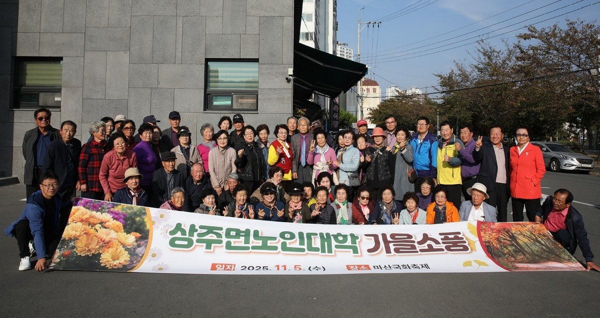 [아시아월드뉴스] 상주면 노인대학 학생 80여명은 지난 11월 5일 경남 창원시에서 열린 ‘2025 마산가고파국화축제’행사장을 방문해 선진지 견학을 진행했다.