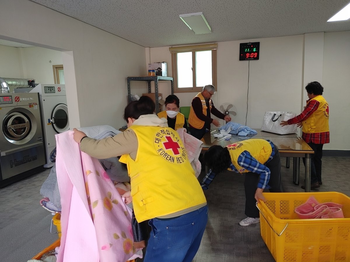 적십자 봉사회원들은 취약계층 가구에서 이불 30여 채를 직접 수거하고 세탁·건조한 뒤 깨끗하게 정리해 각 가정에 전달했다.
