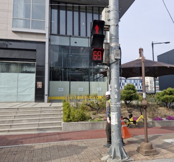 보행신호 적색잔여시간 표시기는 신호등의 적색 신호 시 다음 녹색 신호까지 남은 시간을 숫자로 표시하는 장치로 보행자의 신호 대기 불편을 줄이고 무단횡단을 예방하는 효과가 있다.