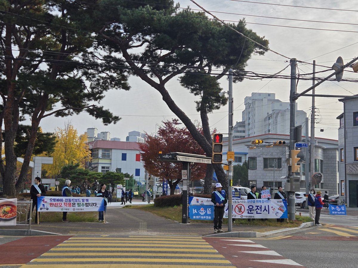 참여자들은 등교 시간대 어린이보호구역과 횡단보도 주변에서 △보행시 운전시 스마트폰 사용 금지 △전동킥보드·오토바이 탈 때 안전모 착용은 필수 △횡단보도 앞 일단멈춤 △방향지시등 켜기 등의 내용으로 피켓, 어깨띠, 현수막을 사용해 등교하는 학생과 운전자들에게 교통안전 수칙을 홍보했다.