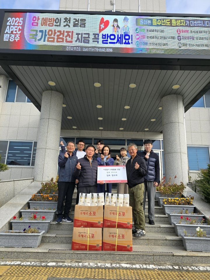 [아시아월드뉴스] 감포청우회가 지난 7일 감포읍 행정복지센터를 방문해 지역 내 취약계층에 전달을 희망하며 잡곡 250포를 기탁했다.