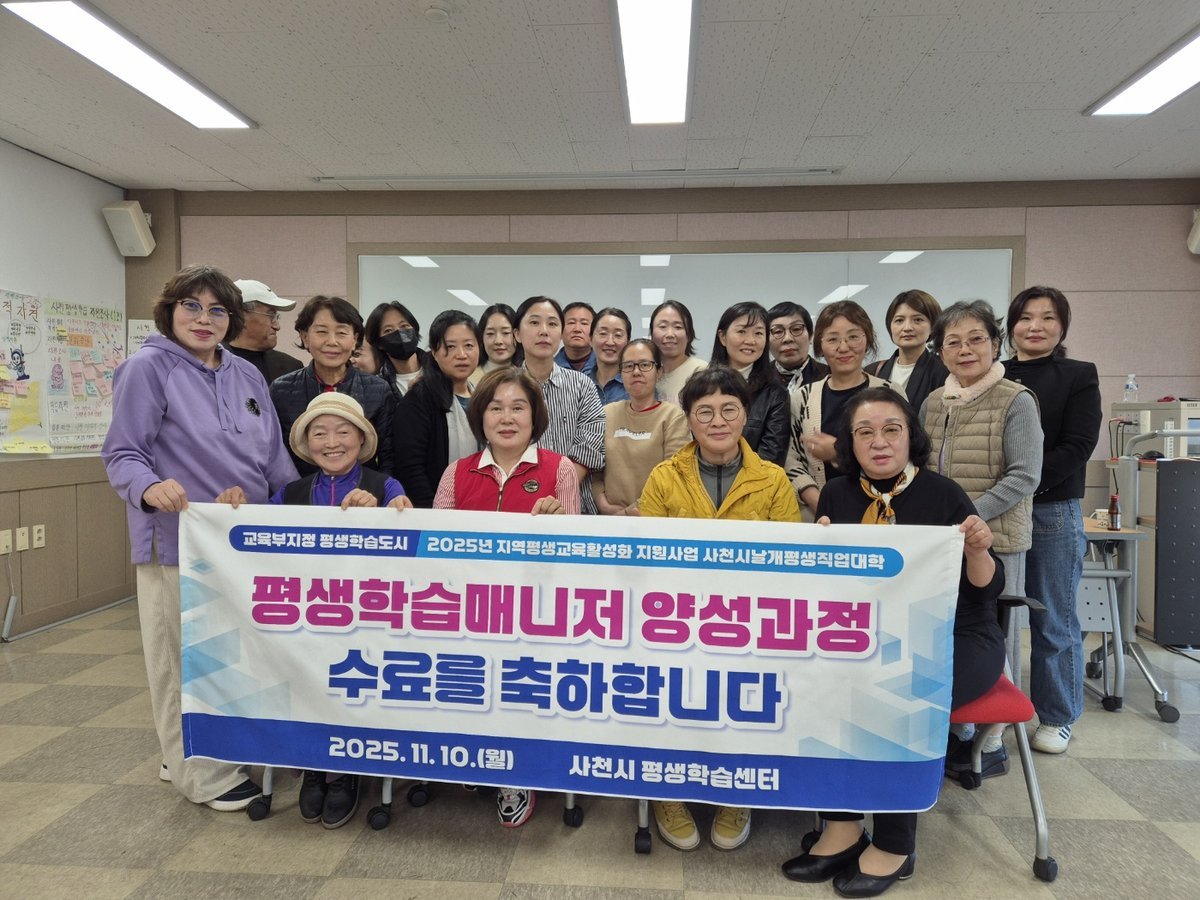 [아시아월드뉴스] 사천시는 지역 평생학습 문화의 확산과 학습사회 구현을 위해 운영한 ‘평생학습매니저 양성과정’을 11월 10일 성황리에 마무리하며 수료식을 가졌다.