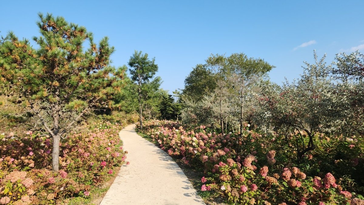 6월에는 산수국이 먼저 피어나 여름의 시작을 알리고 이어 7~8월에는 목수국이 하얗게 개화 해 10월 초까지 절정을 이룬다.