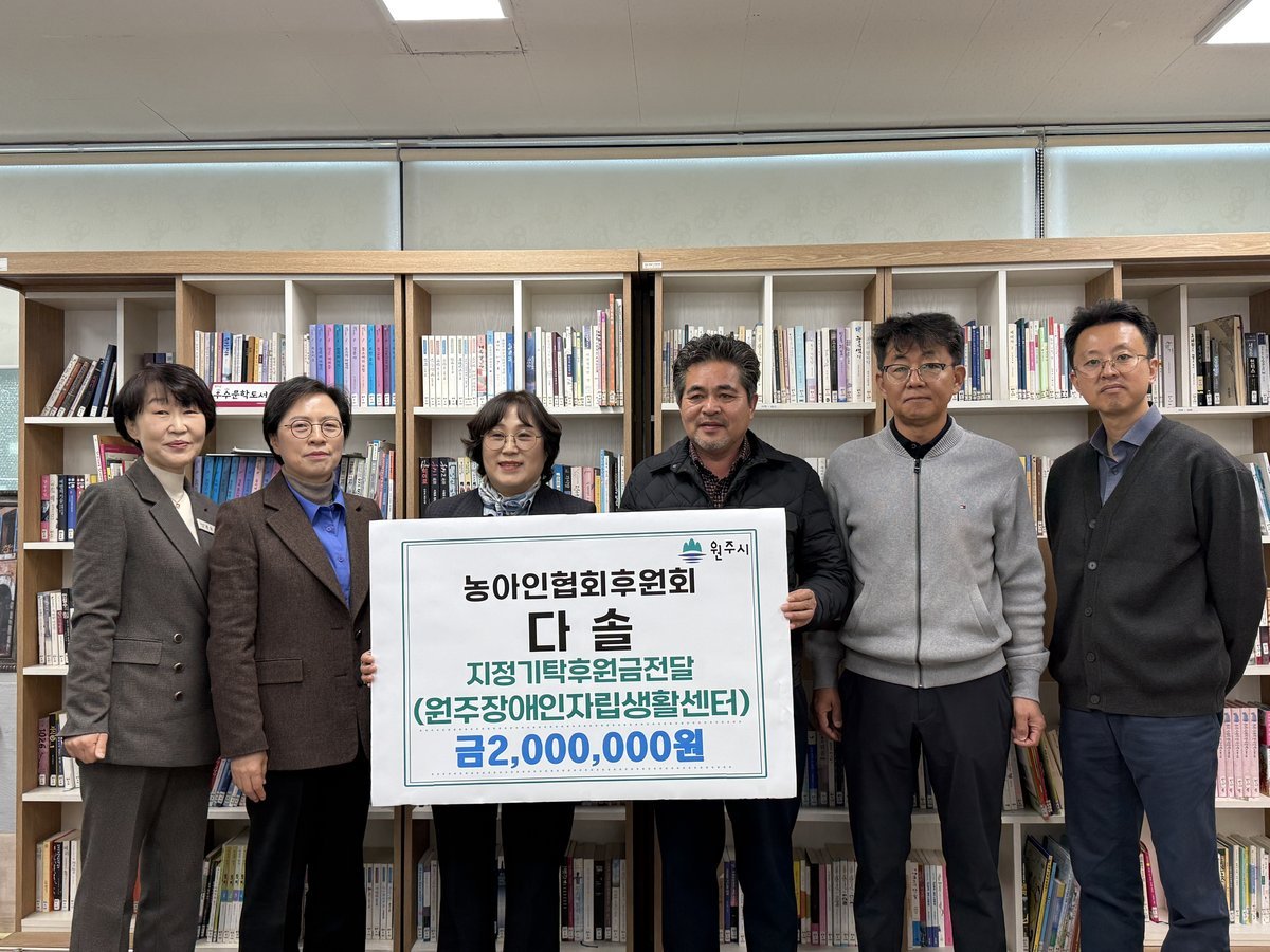 [아시아월드뉴스] 농아인협회 후원단체 다솔은 지난 10일 원주장애인자립생활센터를 찾아 지정기탁 후원금 200만원을 전달하며 지역사회 나눔 활동에 동참했다.