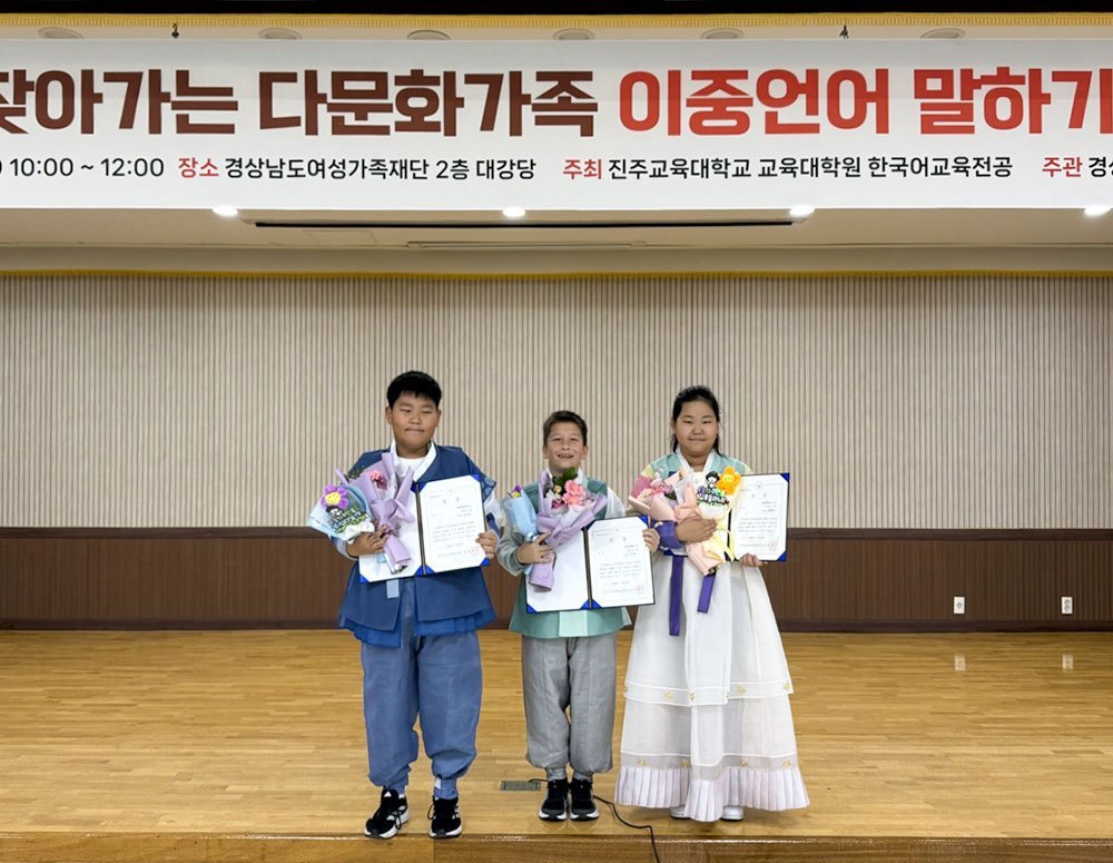 [아시아월드뉴스] 창녕군가족센터는 지난 8일 경상남도여성가족재단에서 열린 ‘2025년 제7회 찾아가는 다문화가족 이중언어 말하기대회’에서 창녕군 대표로 참가한 학생 3명이 모두 수상하는 성과를 거뒀다고 밝혔다.