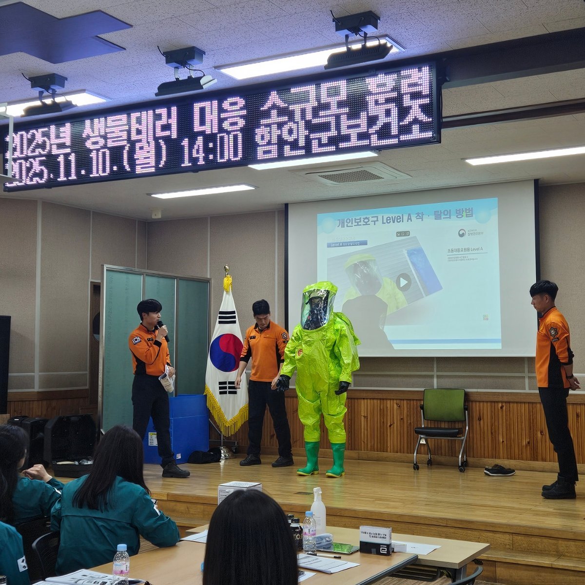 [아시아월드뉴스] 함안군보건소는 지난 10일 오후 2시부터 5시까지 보건소 3층 보건교육장에서 ‘2025년 생물테러 대응 소규모 합동훈련’을 실시했다고 밝혔다.