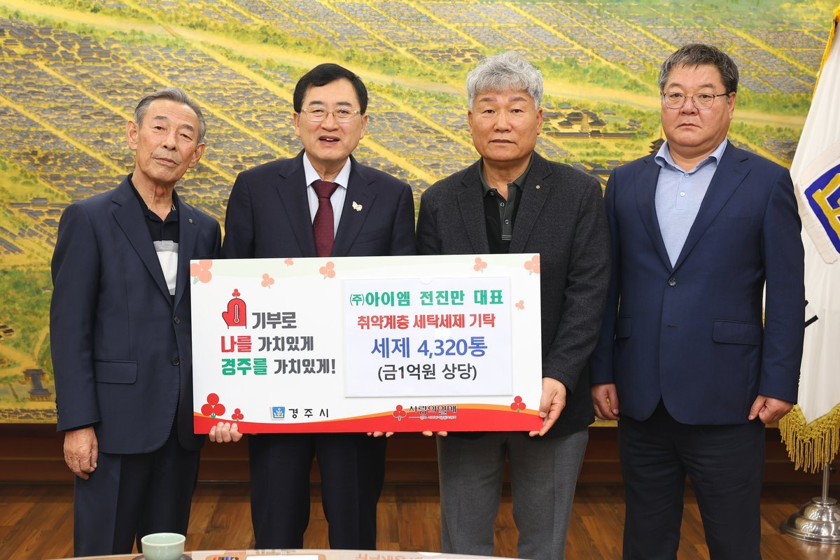 [아시아월드뉴스] 친환경 세탁세제 전문기업 ㈜아이엠은 지난 7일 경주시에 1억원 상당의 친환경 세탁세제 4,320통을 기탁했다고 경주시가 11일 밝혔다.