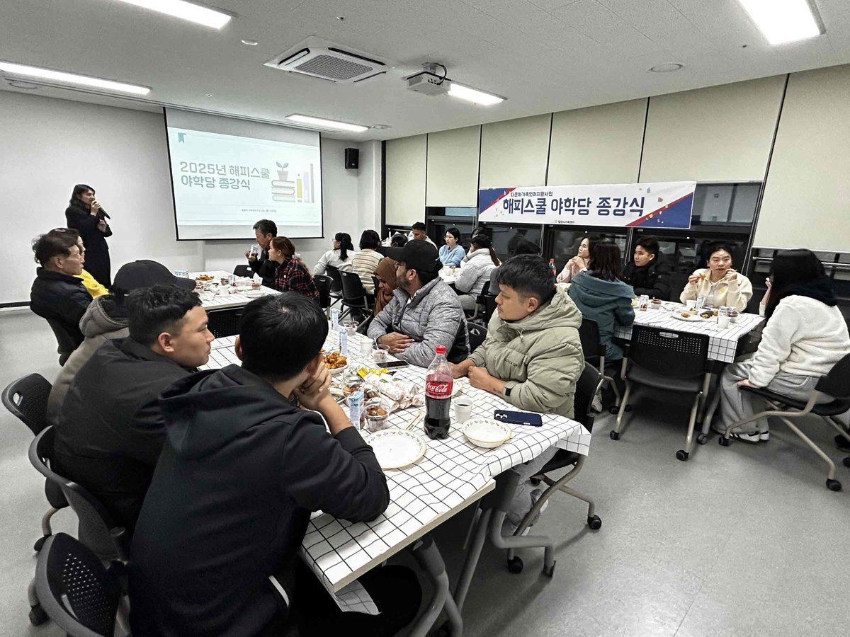 해피스쿨 야학당은 다양한 국적의 이주민들이 한국어를 배우며 지역사회에 안정적으로 적응할 수 있도록 돕는 한국어 및 생활 적응 교육 프로그램이다.