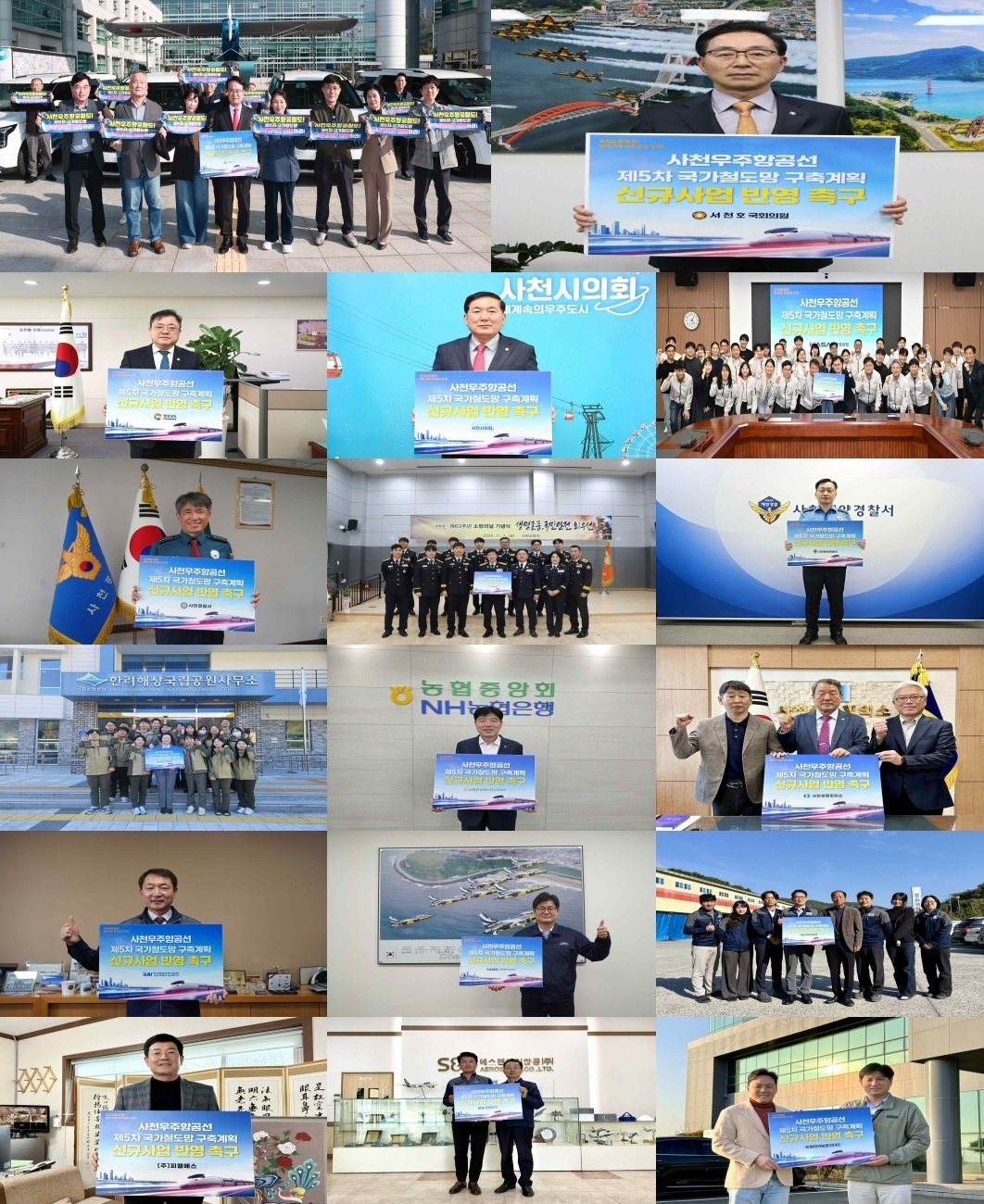 [아시아월드뉴스] 사천시와 지역 주요 기관·기업이 한마음으로 “사천우주항공선”의 ‘제5차 국가철도망 구축계획’반영을 촉구하는 릴레이 캠페인을 전개했다.