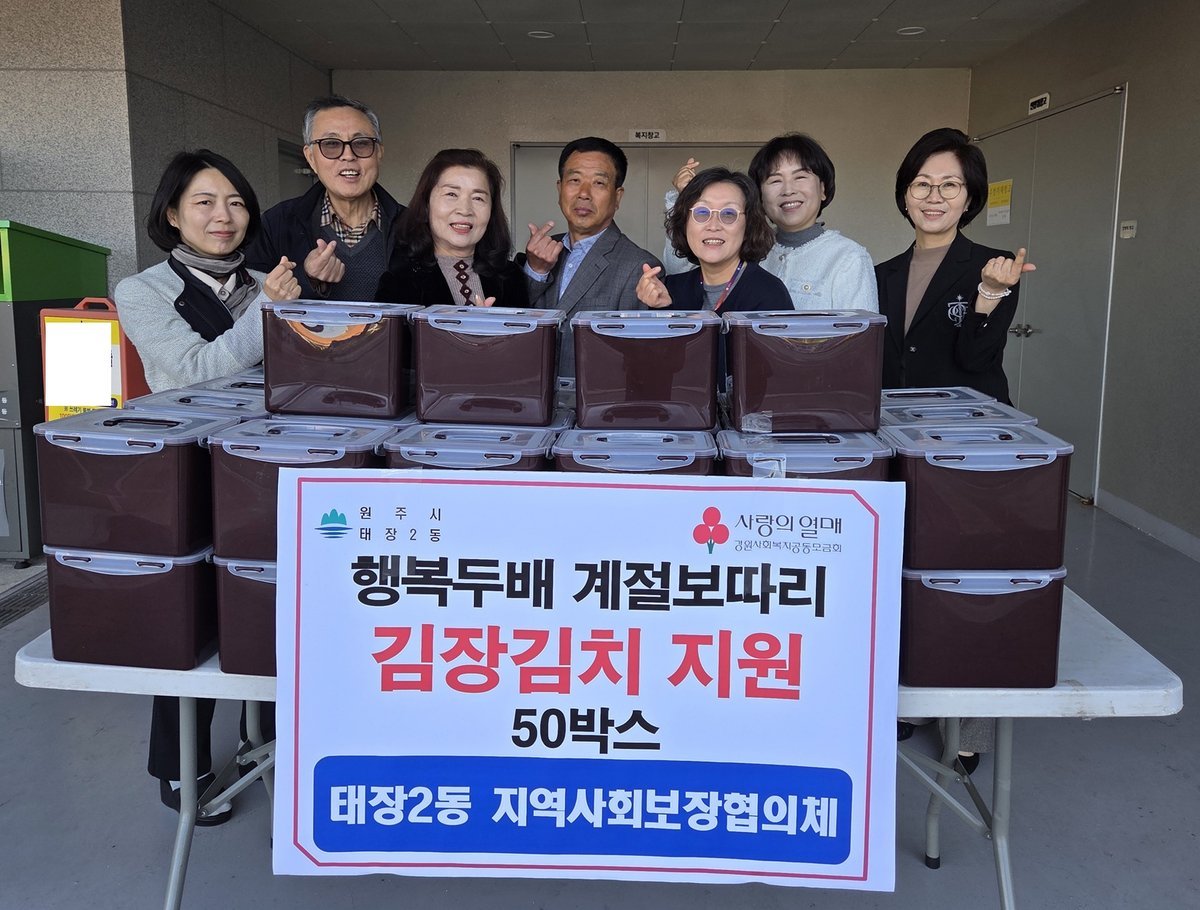 [아시아월드뉴스] 원주시 태장2동지역사회보장협의체는 생활에 어려움을 겪는 관내 취약계층을 위해 지난 10일 태장2동 행정복지센터에 김장김치 50박스를 기탁했다.