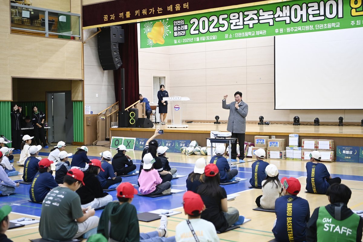 [아시아월드뉴스] 원주녹색어머니연합회는 지난 8일 단관초등학교 체육관에서 ‘2025 원주 녹색어린이 안전골든벨’을 개최했다.