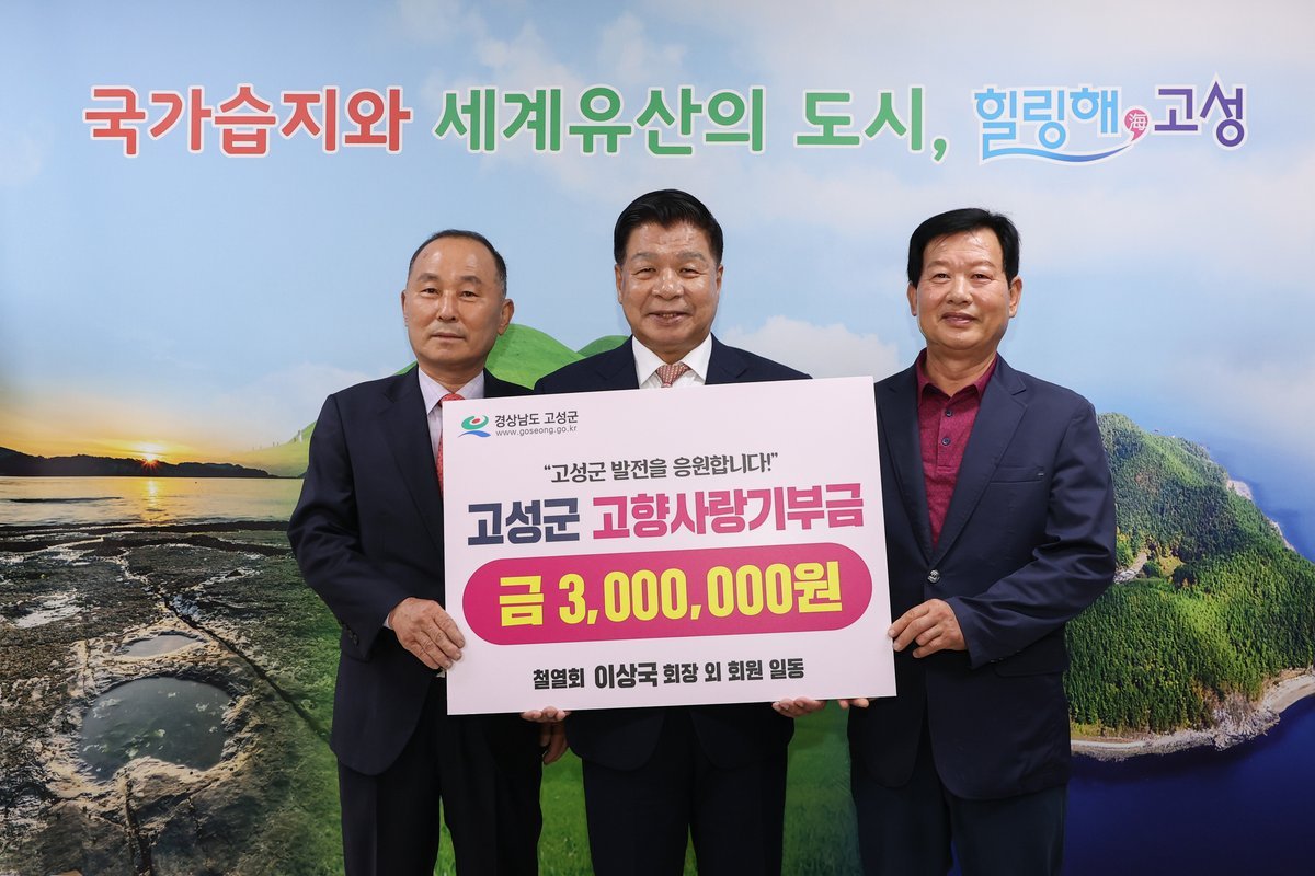 이상근 고성군수는 “고성군의 취약계층 및 군민의 복리 증진을 위해 기부해 주시는 철열회 회원 일동의 깊은 마음에 감사드린다”며, “이 소중한 기부금은 지역사회에 큰 힘이 될 것이며 고성군 발전과 군민들의 삶의 질 향상에 기여할 것이다”고 전했다.