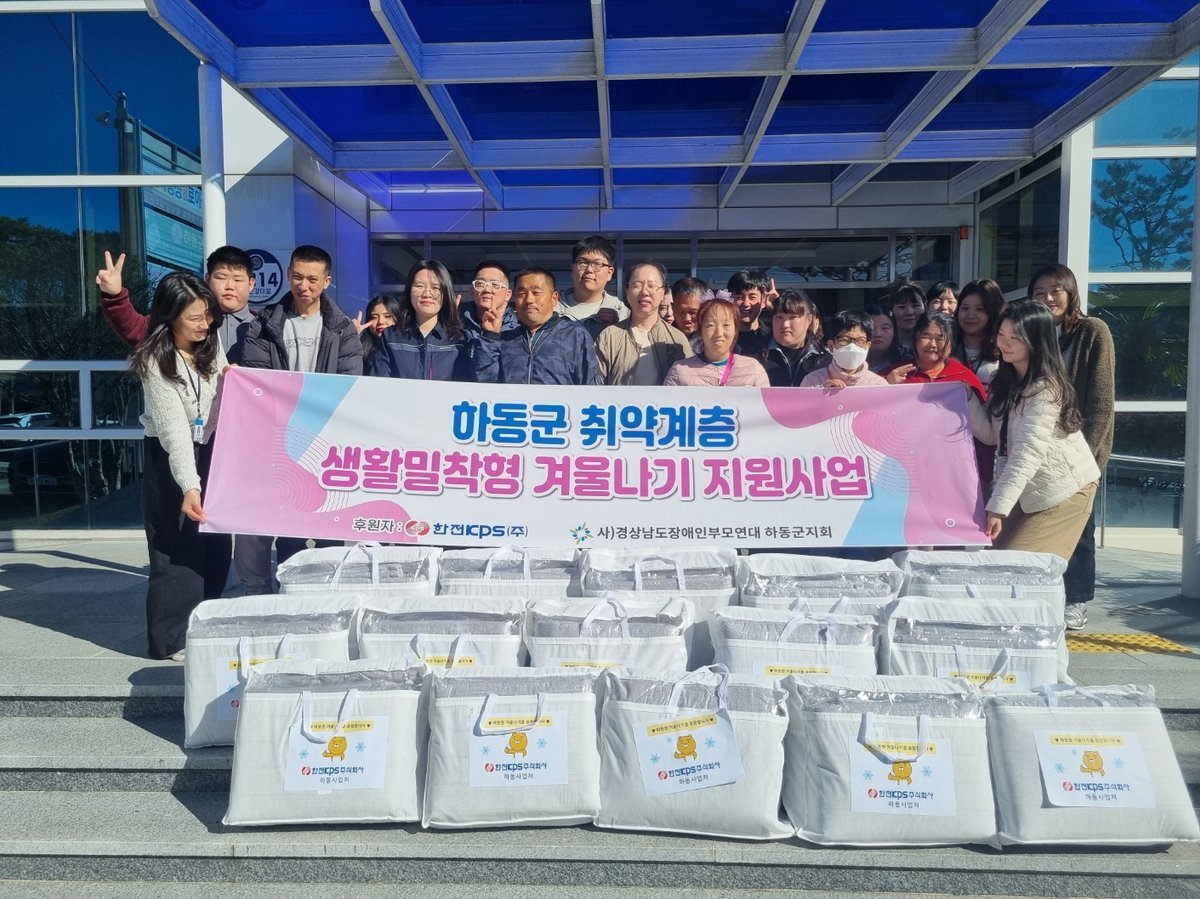 [아시아월드뉴스] 하동군은 지난 11일 한전KPS 하동사업처가 사)경상남도장애인부모연대 하동군지회와 취약계층을 위한 겨울 이불 세트를 전달했다고 밝혔다.