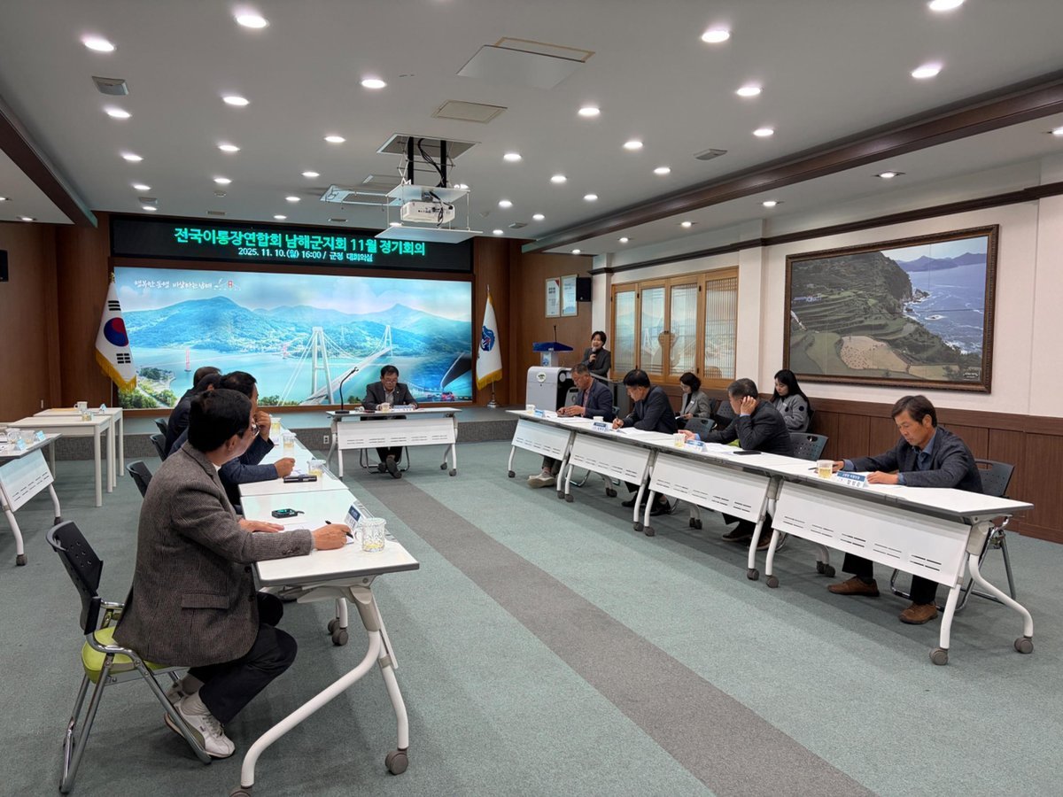 [아시아월드뉴스] 전국 이·통장연합회 남해군지회는 지난 10일 군청 대회의실에서 하정청 지회장을 비롯한 10개 읍·면 이장단장이 참석한 가운데 11월 정기회의를 개최하고 지난 10월 회의에서 제기된 건의사항에 대한 처리현황과 더불어 군정 현안사업을 공유했다.