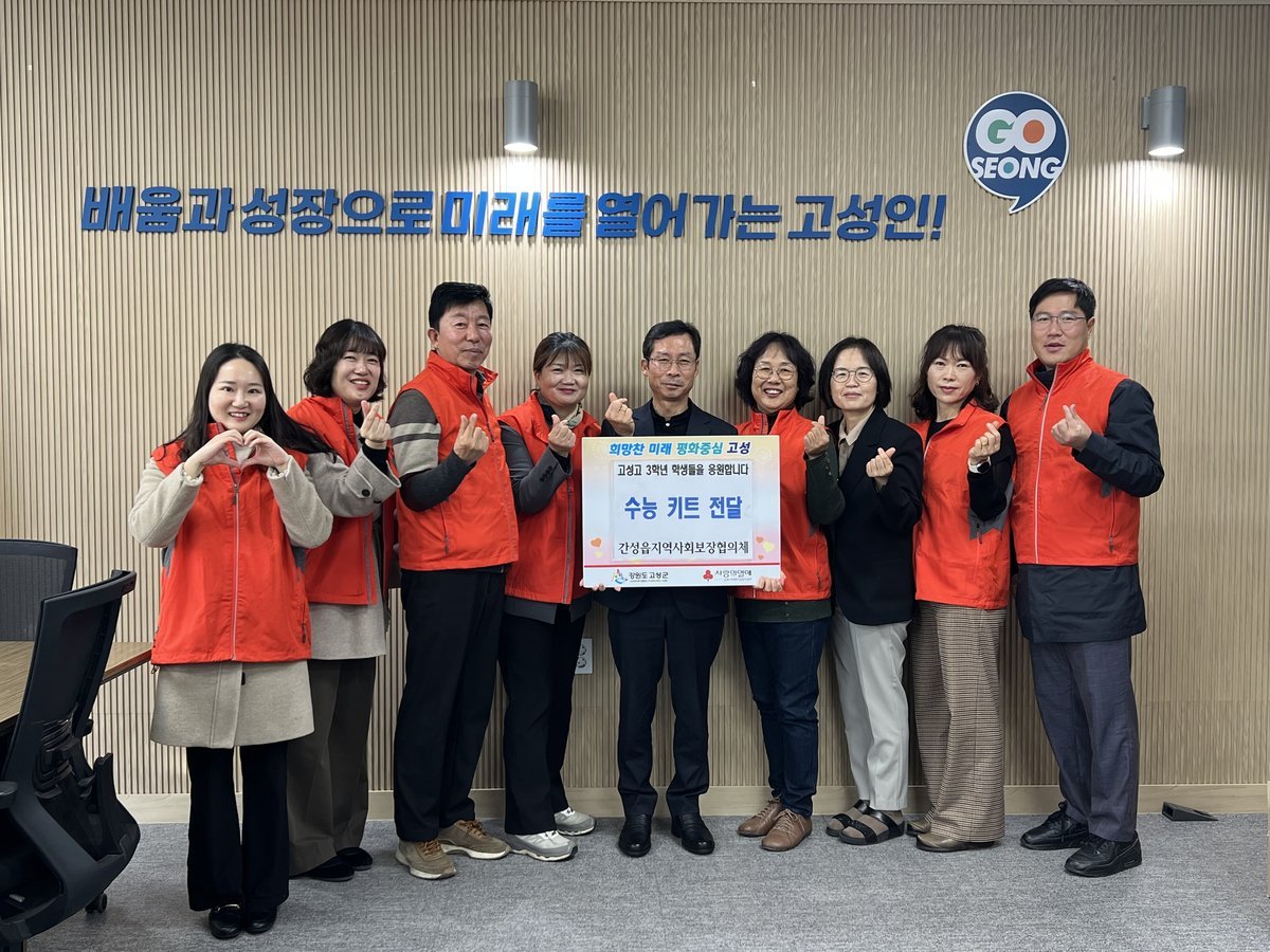 [아시아월드뉴스] 간성읍 지역사회보장협의체는 다가오는 대학수학능력시험을 앞두고 고성고등학교 3학년 수험생 65명을 응원하기 위해 지난 11월 11일 고성고등학교를 방문해 ‘수능 응원 키트’를 전달했다.