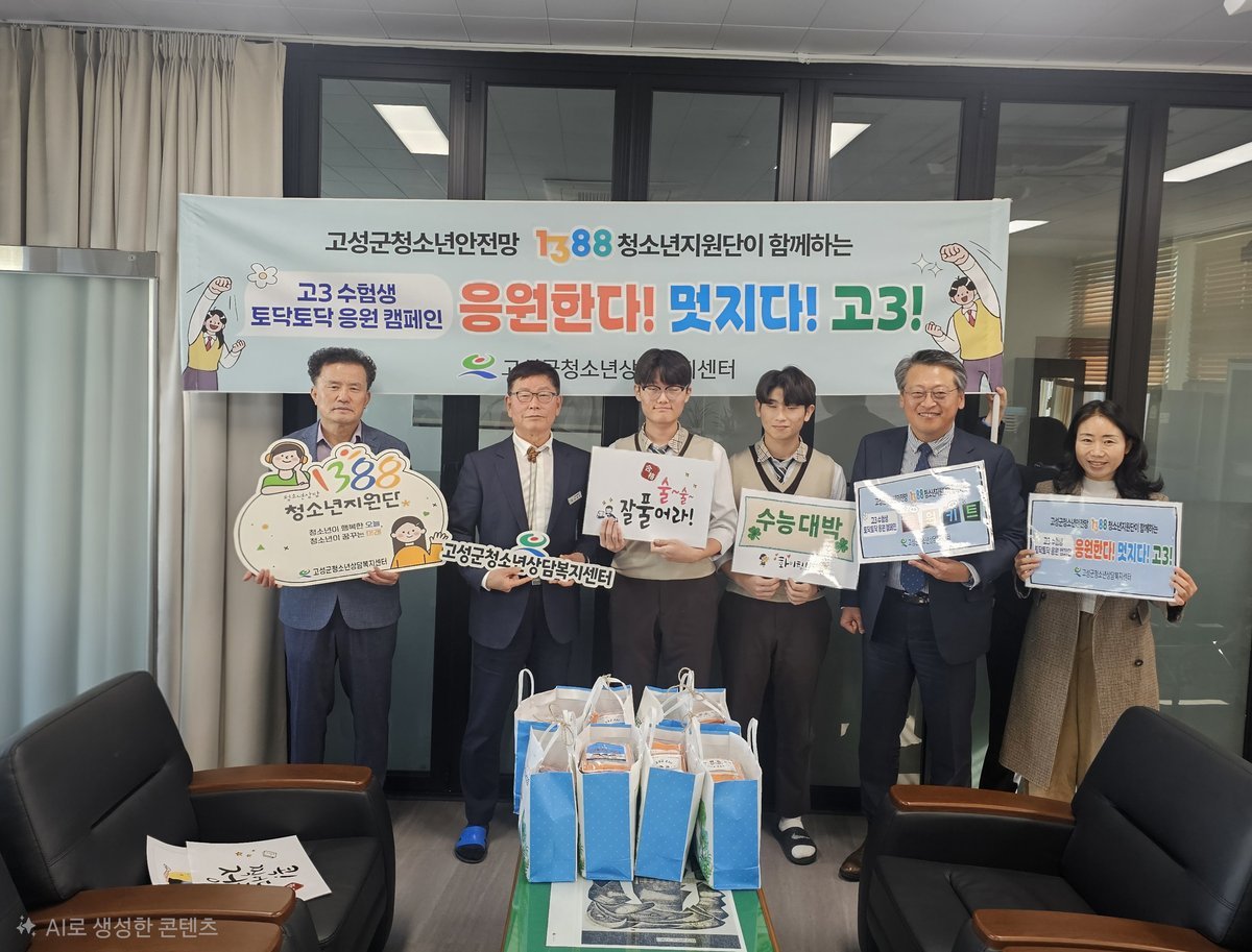[아시아월드뉴스] 고성군청소년상담복지센터는 1388청소년지원단과 함께 2025학년도 대학수학능력시험을 앞둔 관내 고3 수험생들을 대상으로 11월 11일부터 12일까지 ‘토닥토닥! 응원 캠페인’을 추진했다.
