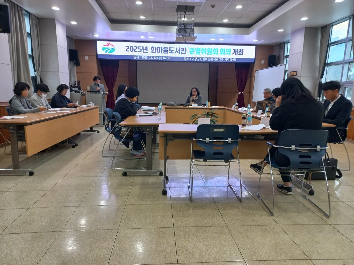 이날 회의는 운영위원 8명과 도서관 관계자들이 참석한 가운데 한마음도서관의 2025년운영 현황을 보고하고 2026년 운영 계획을 협의하는 순으로 회의를 진행했다.