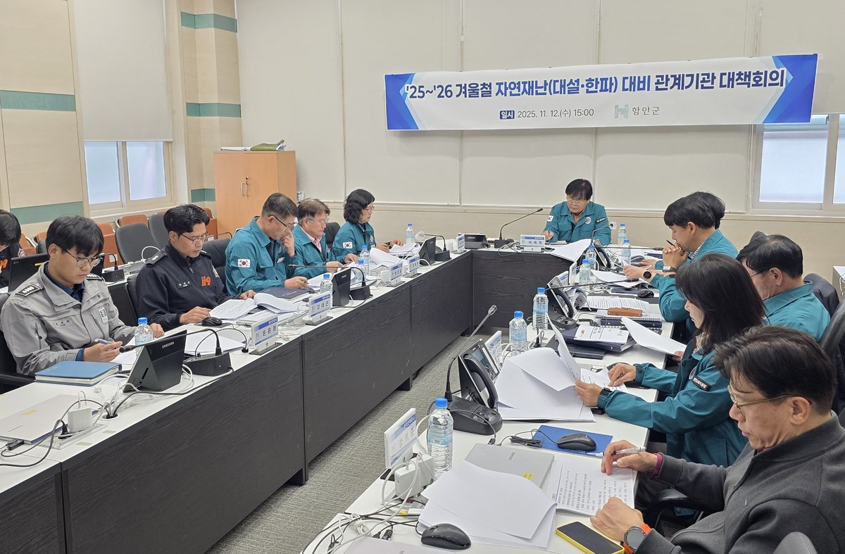 [아시아월드뉴스] 함안군은 다가오는 겨울철 대설과 한파로 인한 피해를 예방하고 군민의 안전을 지키기 위해 12일 군청 재난상황실에서 석욱희 부군수 주재로 ‘대설·한파 대비 관계기관 대책회의’를 열었다고 밝혔다.
