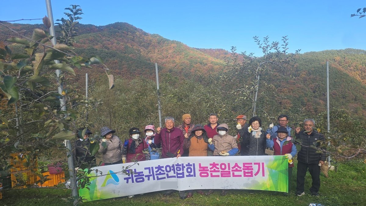 [아시아월드뉴스] 거창군귀농귀촌인연합회는 지난 13일 거창군 남상면 소재 귀농농가의 과수원에서 회원 20여명이 참여한 가운데 사과수확 일손돕기를 실시했다.