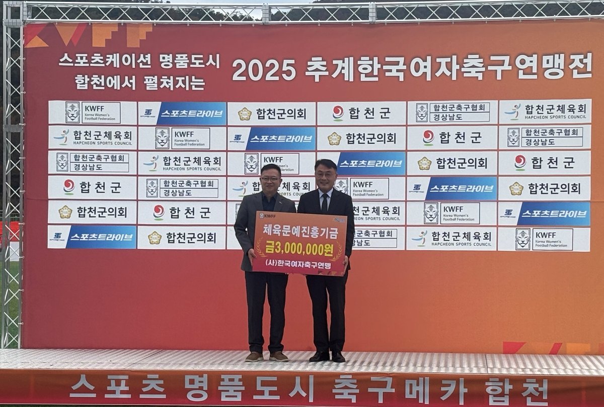 이외에도 대회 마지막날인 12일에는 한국여자축구연맹에서 대회개최지인 합천군에 체육문예진흥기금 300만원을 기탁해 합천군 체육발전 및 체육인프라 구축에 힘을 보탰다.