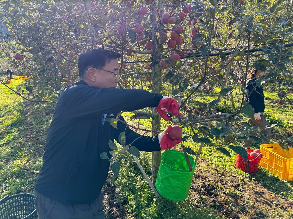 이번 일손돕기는 지역의 인력 부족 문제를 해소하기 위해 성산면과 농업기술센터 농업정책과 직원들이 함께 참여해 사과 수확 작업을 도우며 농가의 부담을 덜었다.