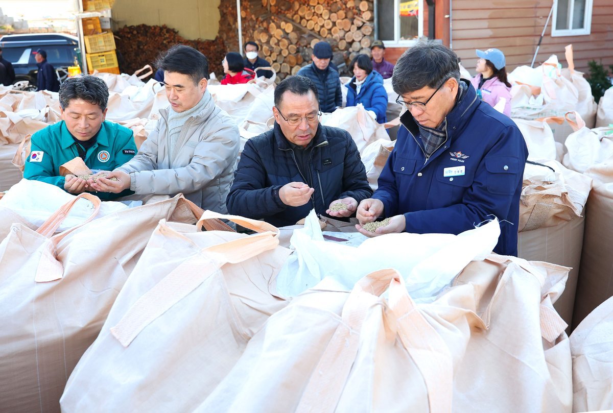[아시아월드뉴스] 함양군은 14일 서상면과 서하면에서 진병영 함양군수, 김재웅 도의원, 이명섭 농산물품질관리원 함양사무소장, 노춘석 농협 함양군지부장, 농협장, 수매 관계자, 농가 등이 참석한 가운데 ‘2025년산 공공비축미 건조벼’첫 매입을 진행했다고 밝혔다.