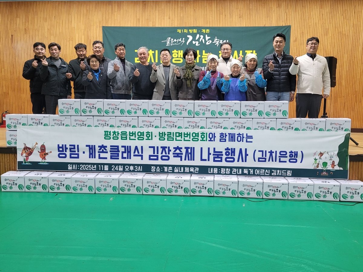 기탁된 김장김치는 평창읍사무소를 통해 지역 내 홀몸 어르신들에게 전달될 예정이며, 이번 나눔 활동은 취약계층의 겨울철 식생활 지원에 기여할 것으로 기대된다.
