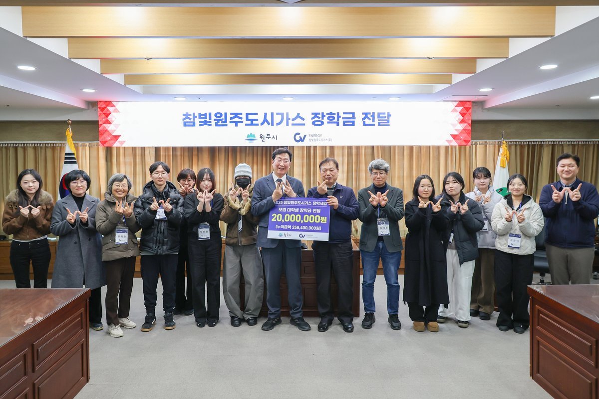원강수 원주시장은 “지역의 밝은 미래를 책임질 인재를 양성하기 위해 밑거름이 될 장학금을 마련해 주신 참빛원주도시가스에 감사드린다”라며, “장학금을 받은 학생들이 앞으로 지역 발전에 기여하는 인물이 되길 기대한다”라고 말했다.