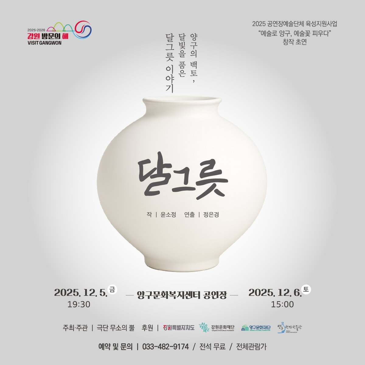[아시아월드뉴스] 양구문화재단이 연말을 맞아 양구 백자를 주제로 한 창작극 ‘달그릇’공연을 선보인다.
