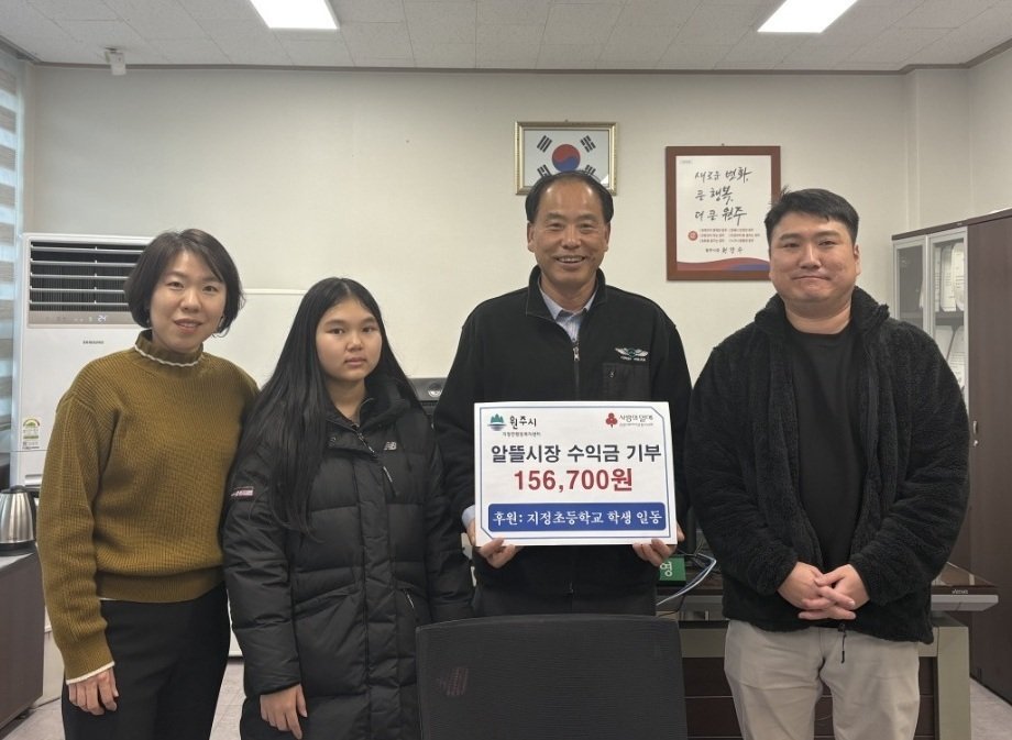[아시아월드뉴스] 원주시 지정초등학교는 알뜰시장을 통해 마련한 수익금 15만6700원을 지난 4일 지정면 행정복지센터에 기부해 지역사회를 위한 따뜻한 나눔을 실천했다.