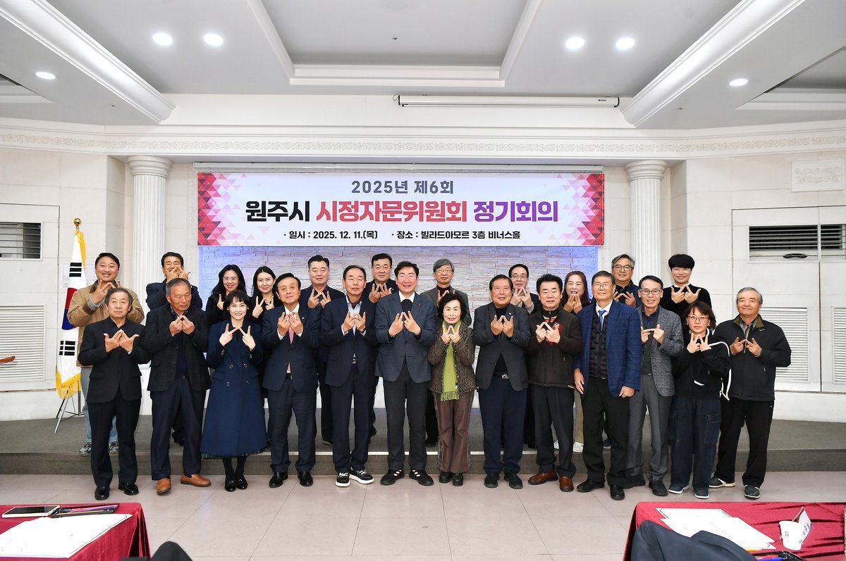 [아시아월드뉴스] 원주시 시정자문위원회는 지난 11일 빌라드아모르에서 2025년 제6회 정기회의를 개최했다.