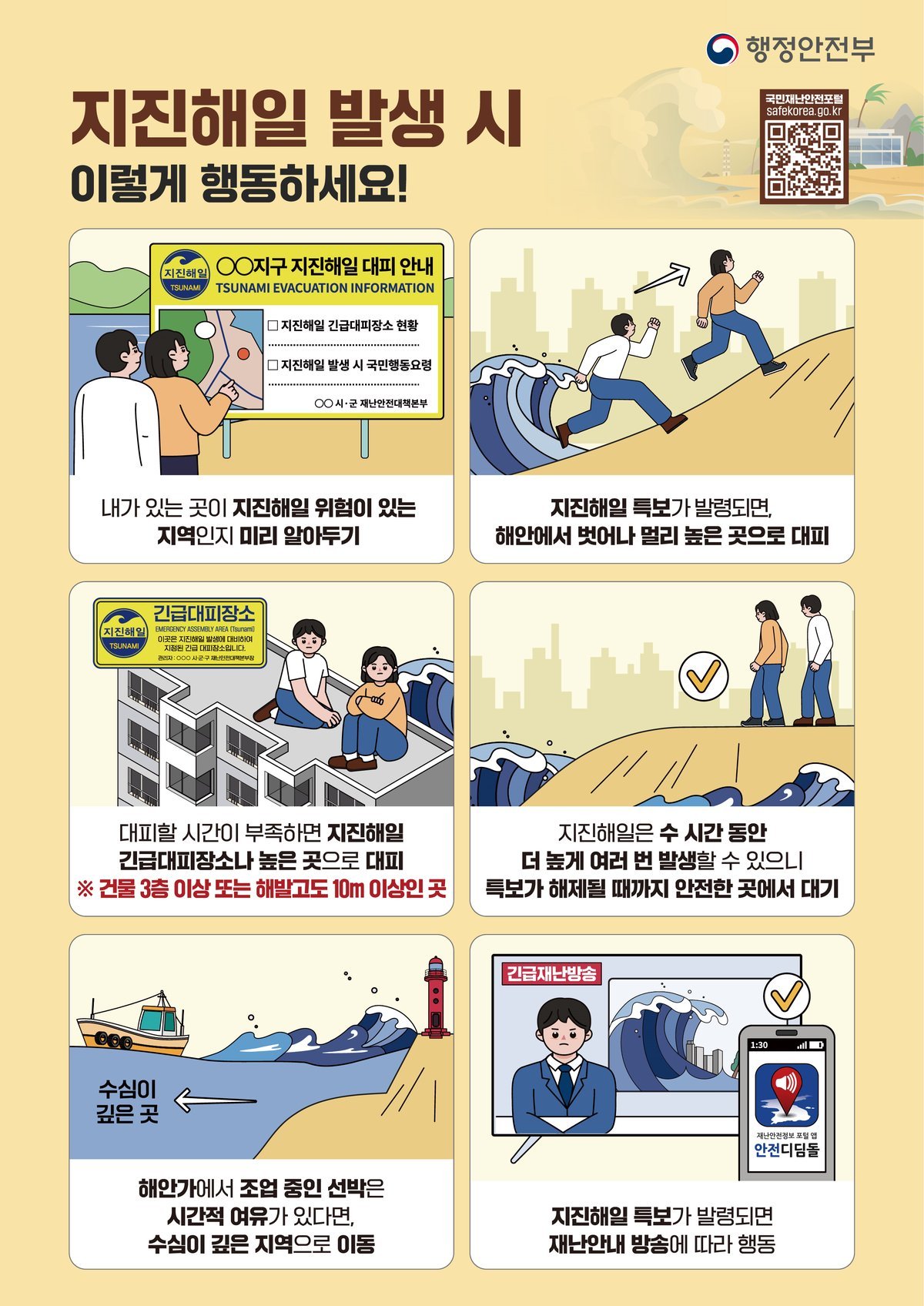 “국민께서도 지진과 지진해일 발생에 대한 관심을 가져 주시고 행동요령과 대피장소를 미리 확인하시기 바란다”라고 당부했다.