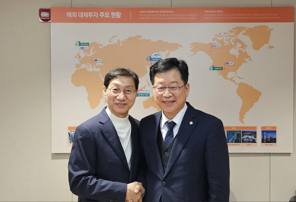 [아시아월드뉴스] 지난 12월 23일, 안호영 국회 기후노동위원장은 전주 국민연금공단 본부에서 김성주 국민연금공단 이사장과 면담을 갖고 △퇴직연금공단 설립을 통한 ‘연금수도’완성 △정책형 주민참여 펀드 활성화 △AI 금융 기반 기본사회 전략 △혁신도시 정주여건 개선 등 전북 금융·연금 생태계 강화를 위한 협력 방안을 논의했다.