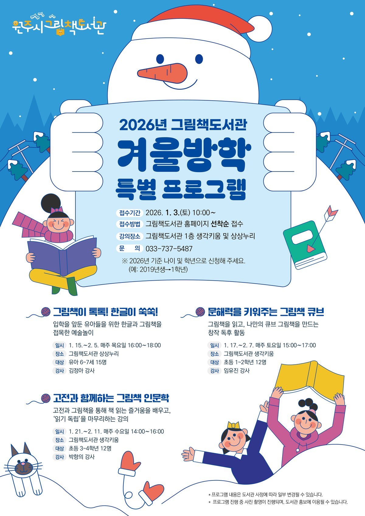[아시아월드뉴스] 원주시 그림책도서관은 겨울방학을 맞은 어린이를 대상으로 특별 프로그램을 운영한다.