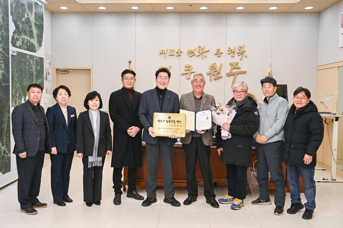[아시아월드뉴스] 원주시는 제1호 농특산물 명인으로 이병동 씨를 선정하고, 지난 26일 명인 인증서와 인증패를 전달했다.