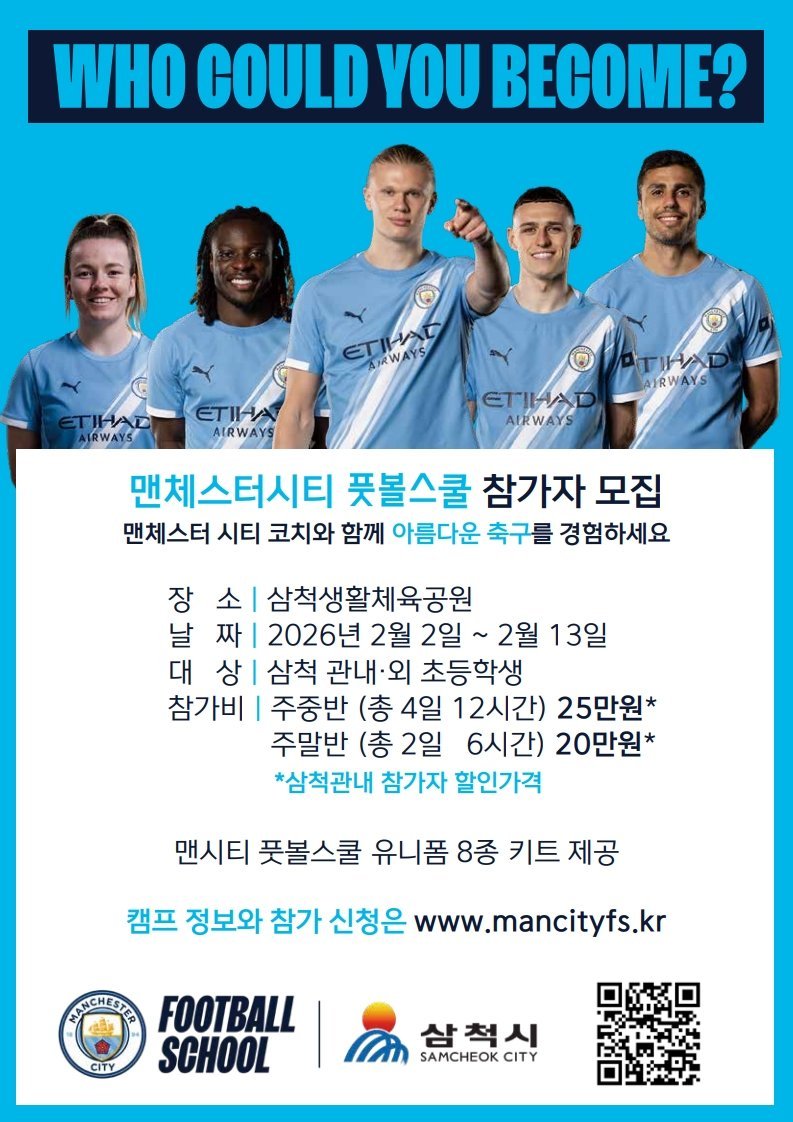 맨체스터 시티 FC와 삼척시가 함께 추진하는 MCFS 삼척 프로그램은 세계적 수준의 축구 교육 철학을 지역 유소년에게 전하고, 장기적으로 지역 축구 경쟁력을 강화하기 위해 마련됐으며, 지난 9월에는 유소년 맞춤형 축구 교육 프로그램을 운영하였다.