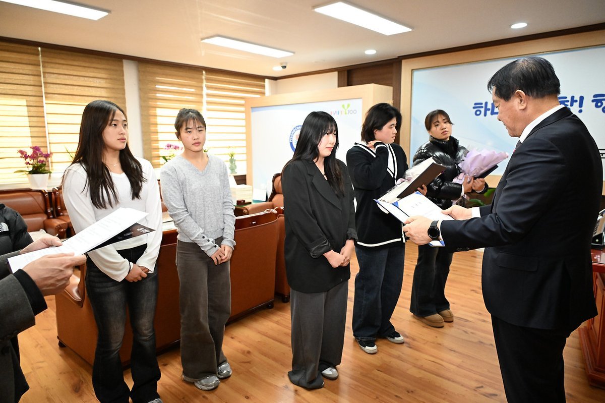 심재국 평창군수는 이번 수여식에서 재계약 선수 3명, 신규 영입 선수 2명 총 5명에게 임용장을 수여하며 여러 대회에서 좋은 성적을 거두어 평창군 체육 발전과 위상을 높여 달라고 당부했다.