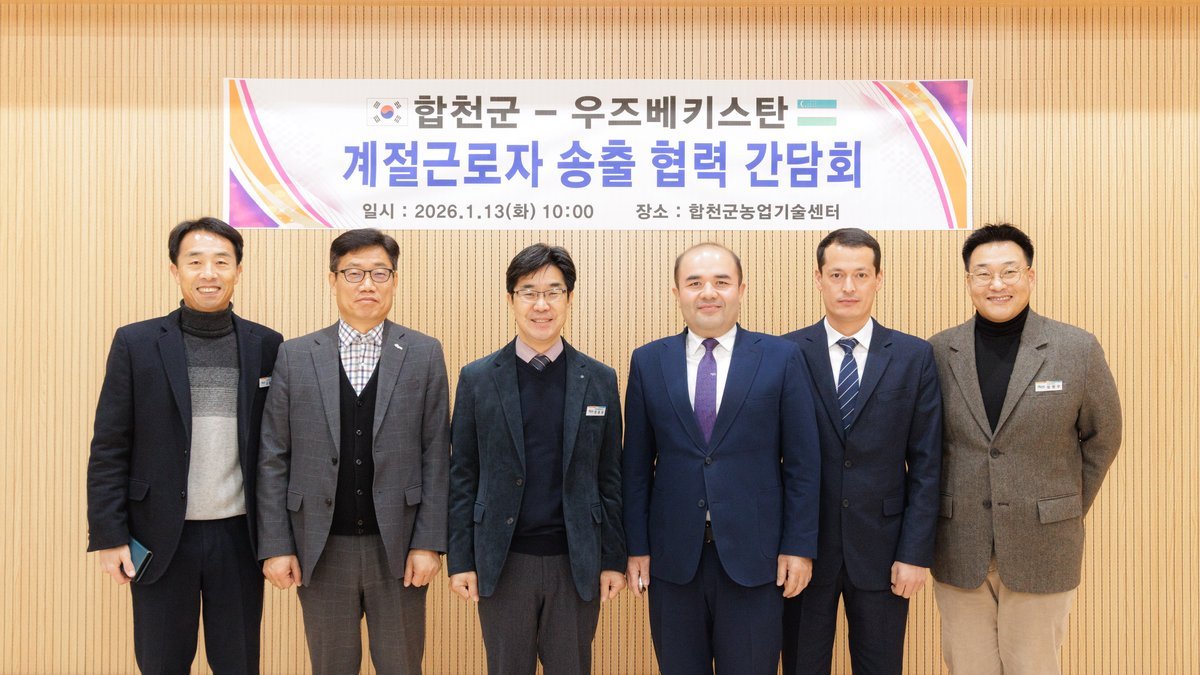 [아시아월드뉴스] 합천군은 농번기 만성적인 인력난을 해소하고 안정적인 인력 수급체계를 구축하기 위해 13일 농업기술센터에서 '우즈베키스탄 외국인계절근로자 송출 협력 간담회'를 개최했다.