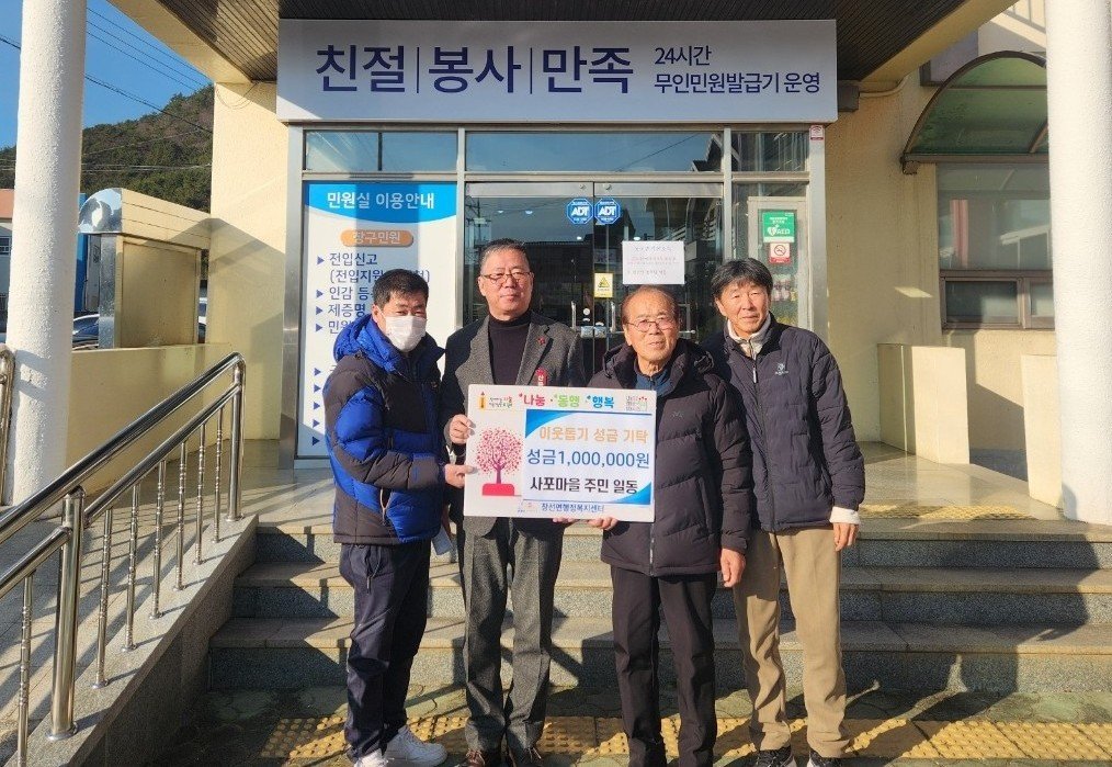 이번 성금 기탁은 지난해 12월 26일 마을회관에서 열린 사포마을 동회에서 결정되었으며, 참석한 47명의 주민은 마을 내 경제적 어려움을 겪고 있는 장애인 가구의 생활 안정에 도움을 주기 위해 모두 한마음으로 뜻을 모았다.