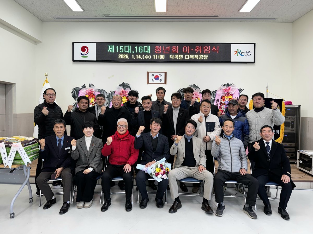 [아시아월드뉴스] 합천군 덕곡면 청년회는 14일 덕곡면 다목적강당에서 지역 기관사회단체장과 주민 80여 명이 참석한 가운데 제15대 회장 이임식과 제16대 회장 취임식을 개최했다.