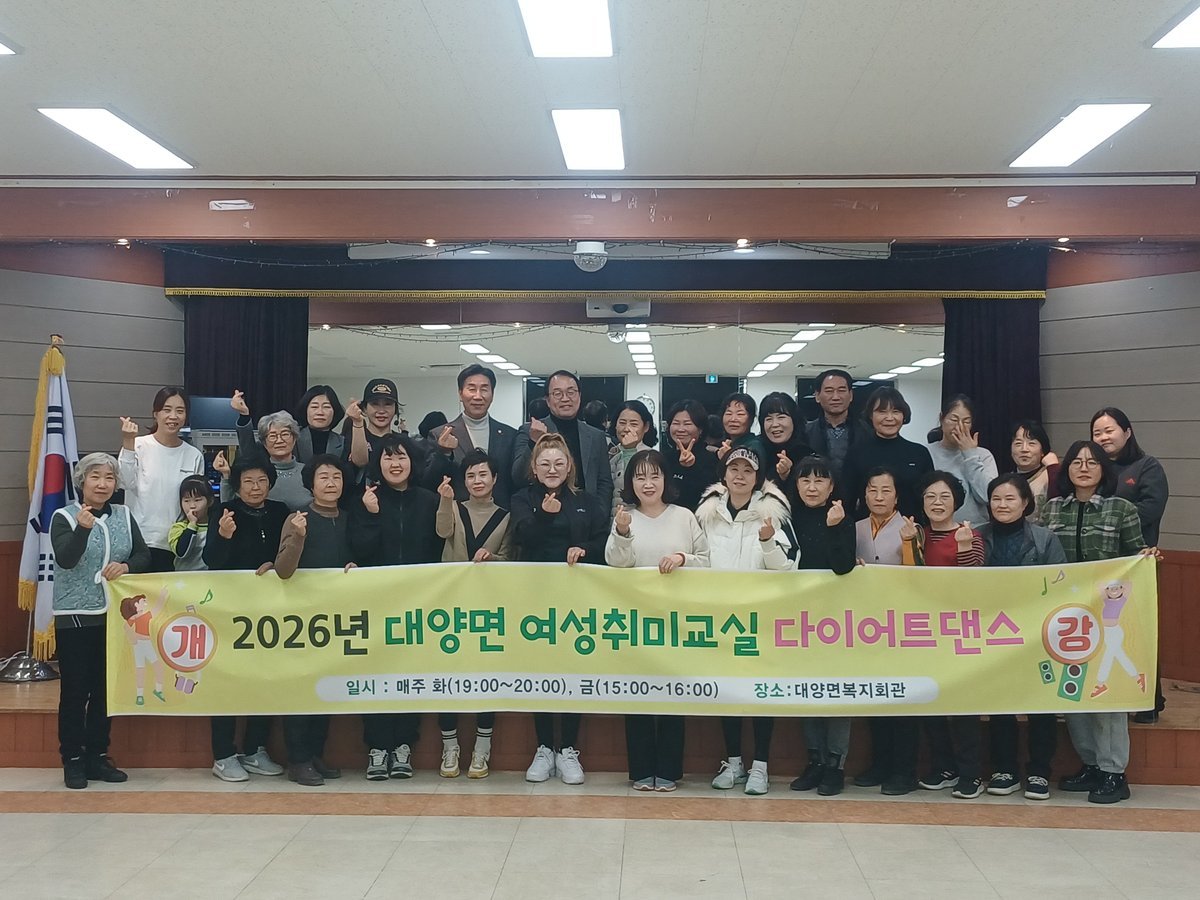 박수영 대양면장은 "다이어트댄스 교실이 주민들의 건강한 생활에 도움이 되는 것은 물론, 마을 간 소통과 화합을 넓히는 계기가 되길 바란다"며 "앞으로도 주민 수요에 맞는 다양한 취미·여가 프로그램을 지속적으로 운영해 나가겠다"고 말했다.