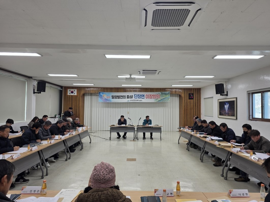 [아시아월드뉴스] 밀양시 단장면 이장협의회은 14일 단장면행정복지센터 회의실에서 25개 마을 이장이 참석한 가운데 2026년 첫 이장회의를 개최했다.
