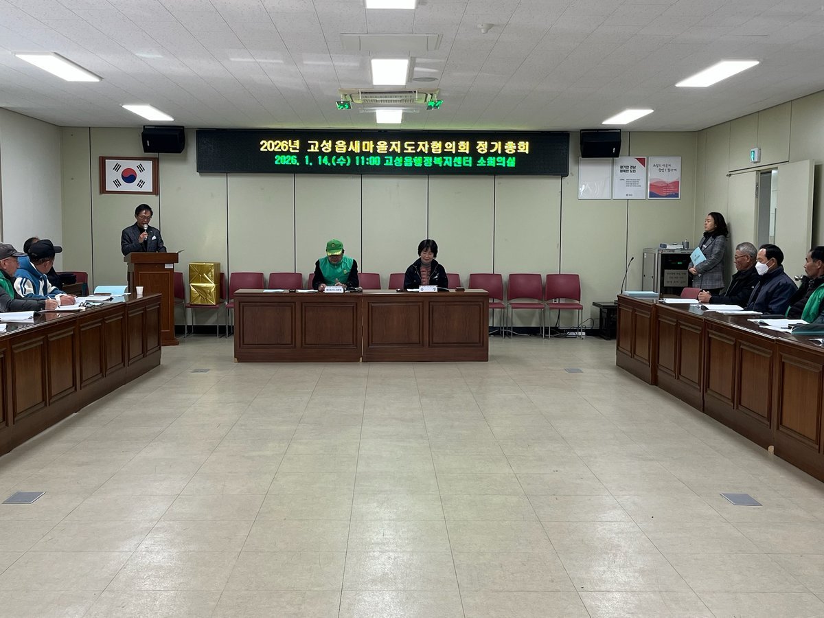 [아시아월드뉴스] 고성읍새마을지도자협의회는 1월 14일, 고성읍행정복지센터 2층 소회의실에서 고성읍장, 도의원, 군의원, 고성농협 조합장 등 내빈과 새마을지도자 30여 명이 참석한 가운데 2026년 정기 총회를 개최했다고 밝혔다.