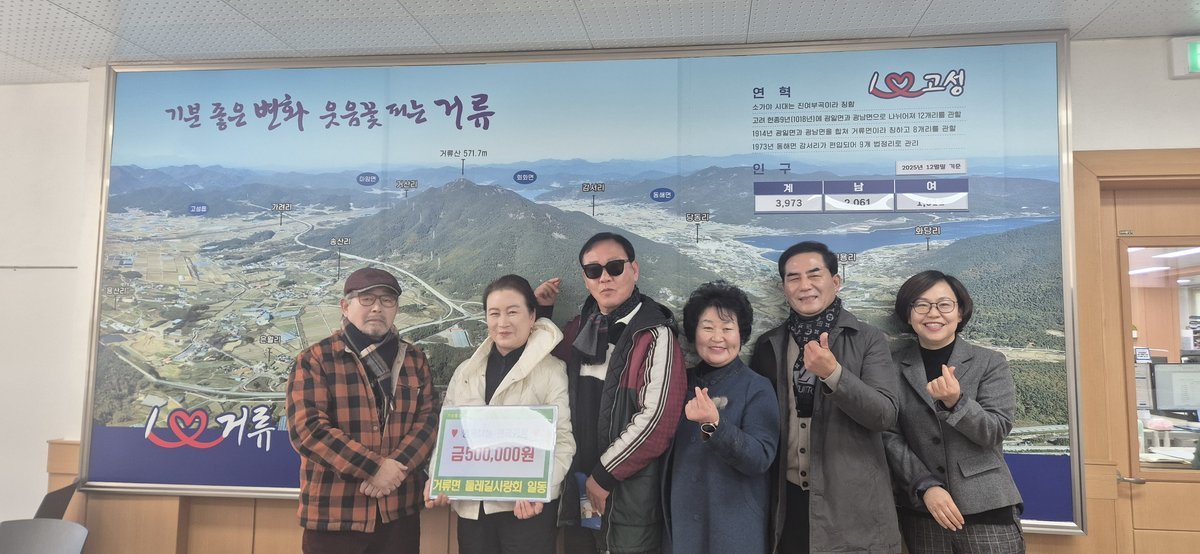 [아시아월드뉴스] 고성군 거류면 둘레길사랑회는 1월 14일, 거류면사무소를 방문해 소외된 이웃에게 전달해 달라며 성금 50만 원을 기탁했다.